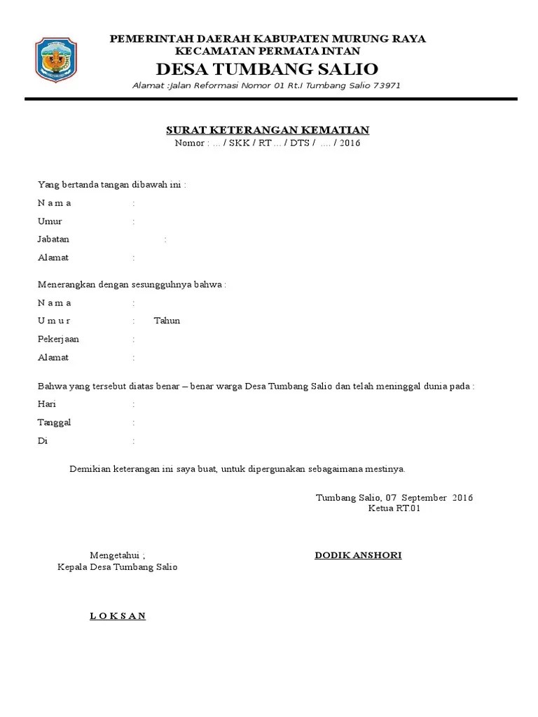 Surat keterangan kematian dari petugas medis atau lurah/kepala desa setempat/kepolisian.